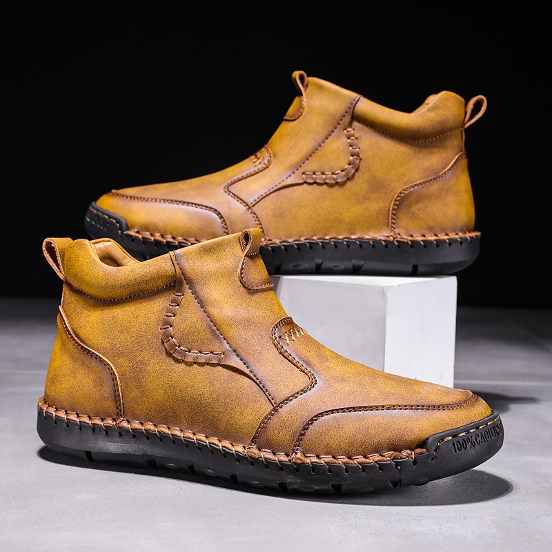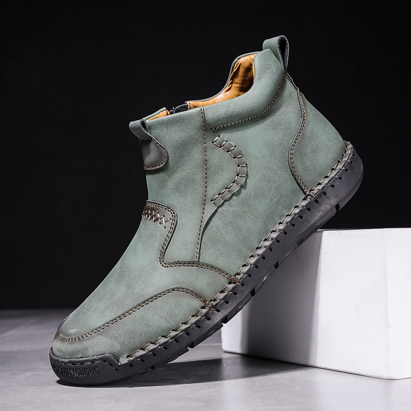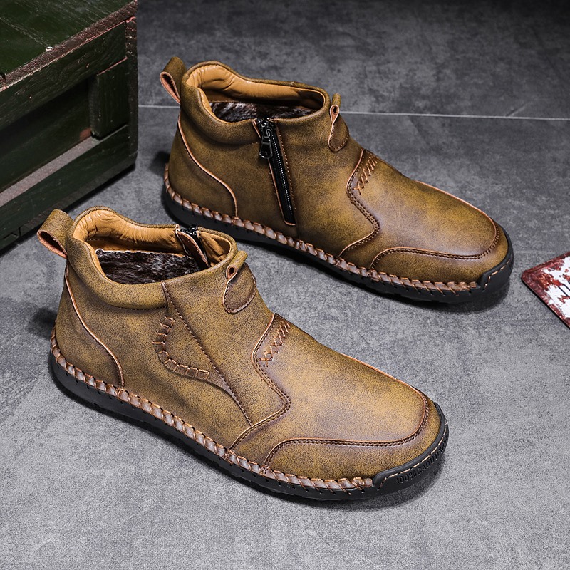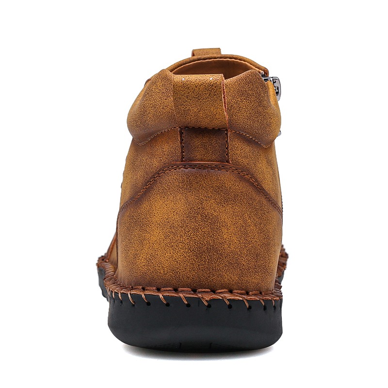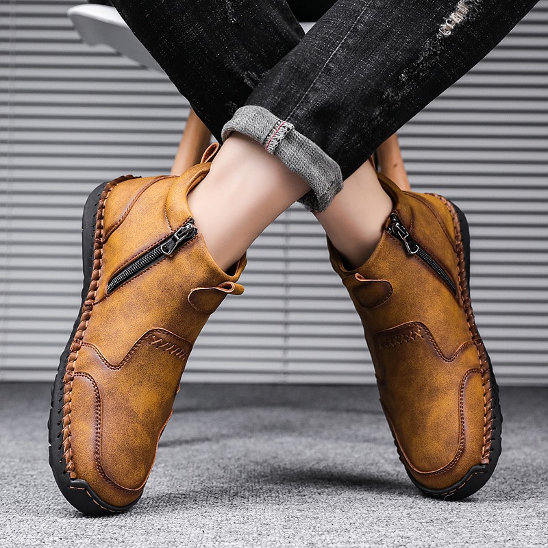 Men Hand Stitching Microfiber Leather Comfy Non Slip Side Zipper Ankle Boots