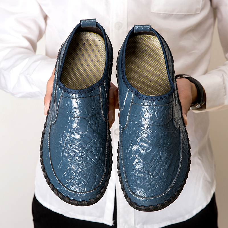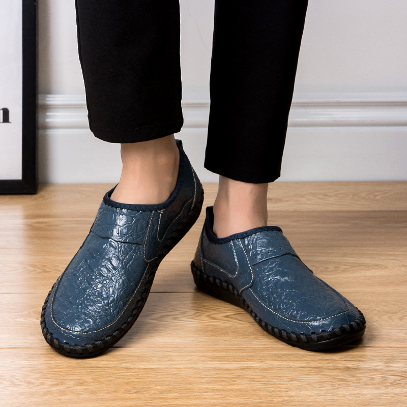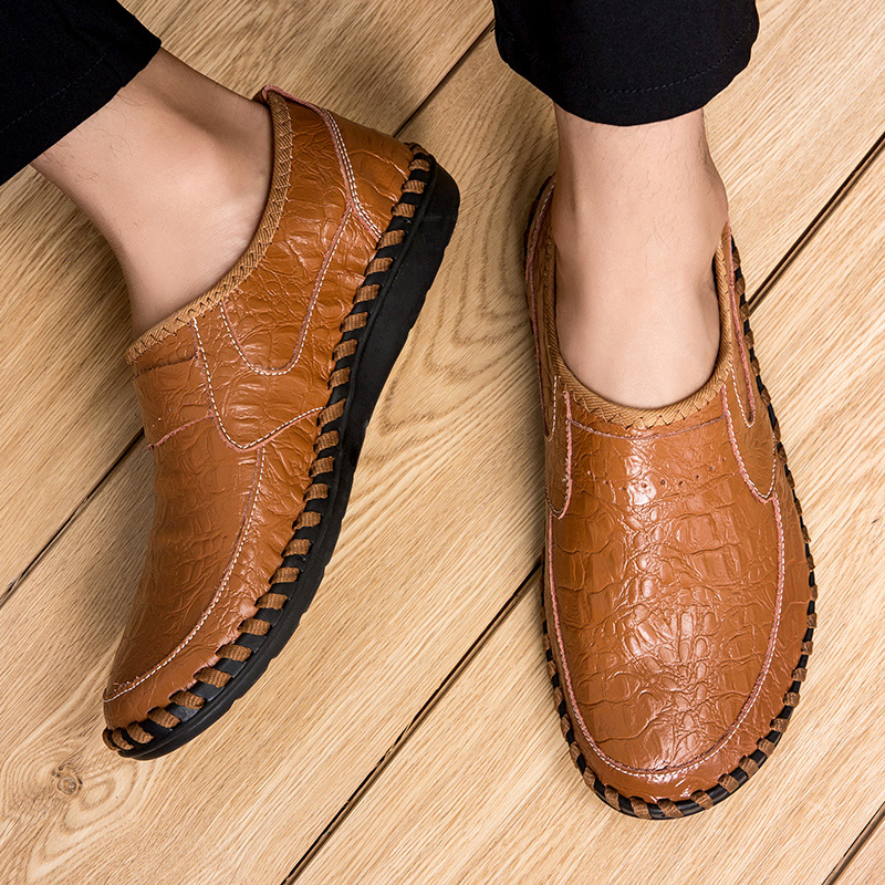 Men Soft Cowhide Hand Stitching Casual Slip On Business Oxfords