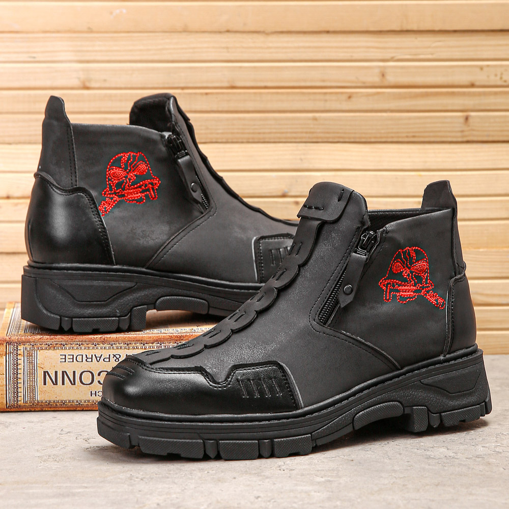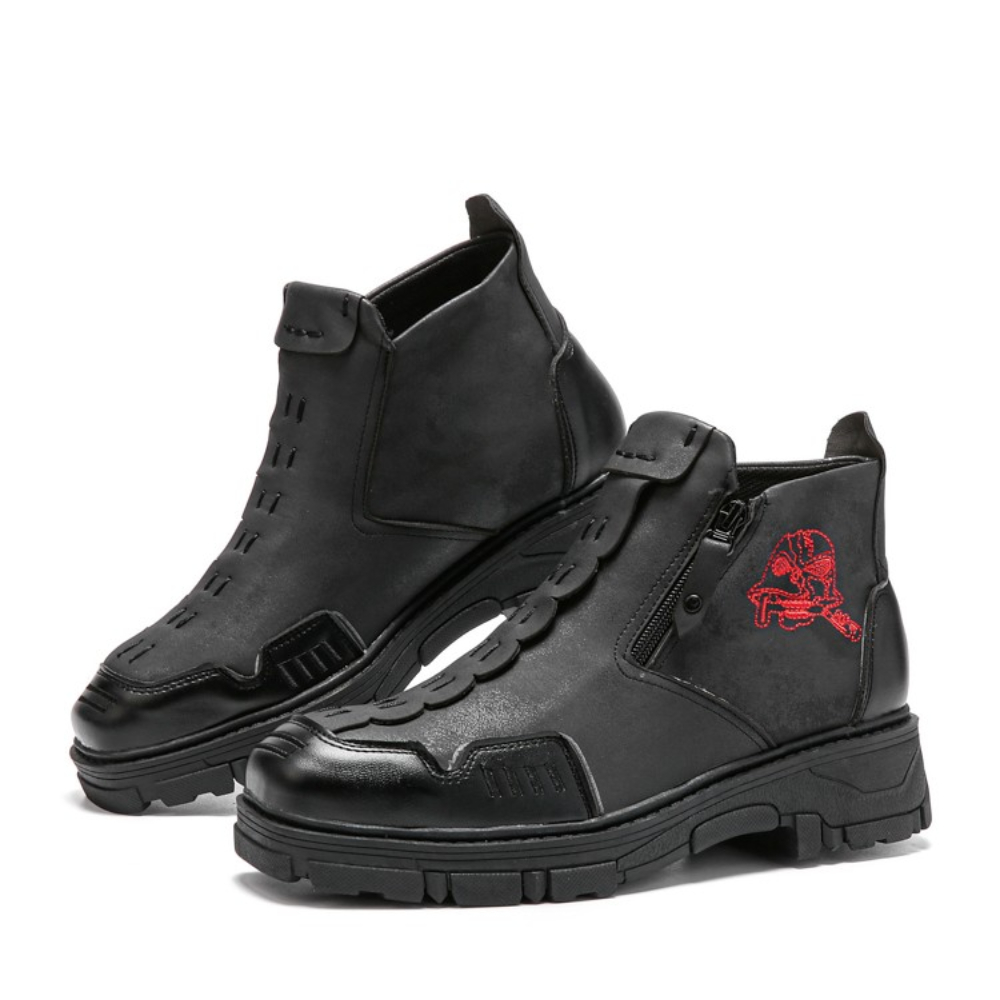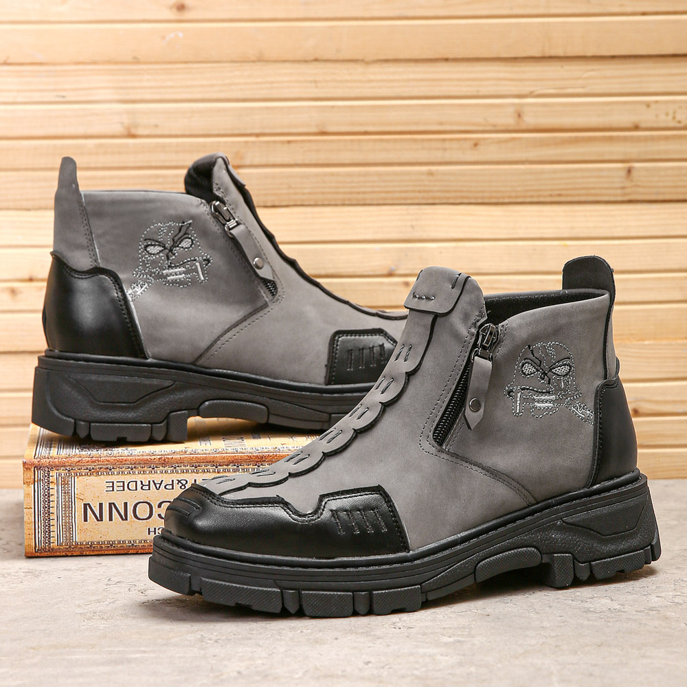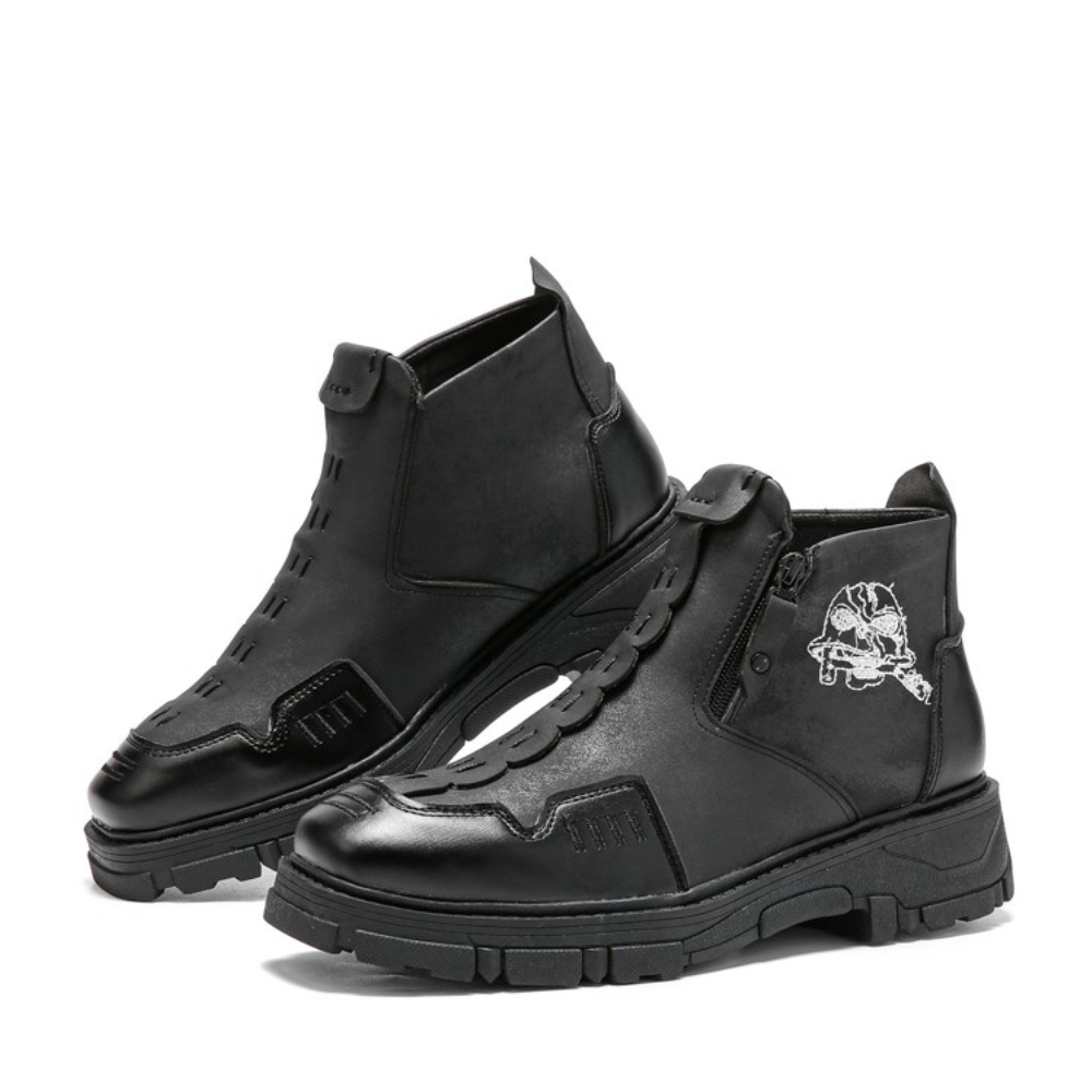 Men Leather Breathable Soft Sole Halloween Skull Pattern Zipper Casual Martin Ankle Boots