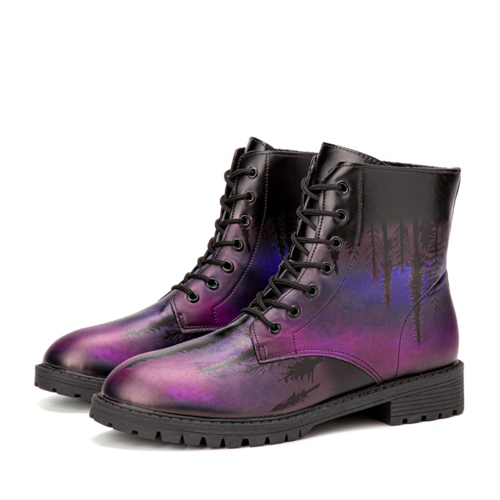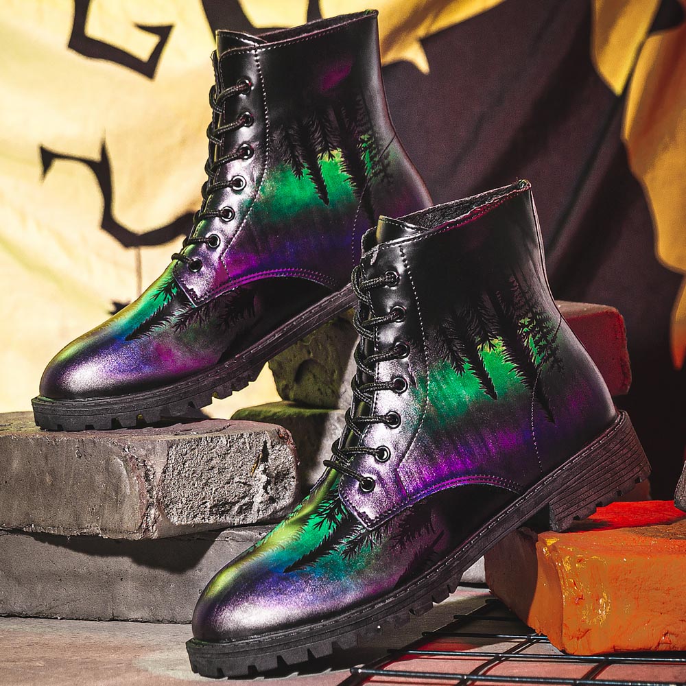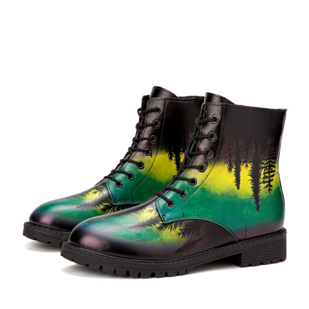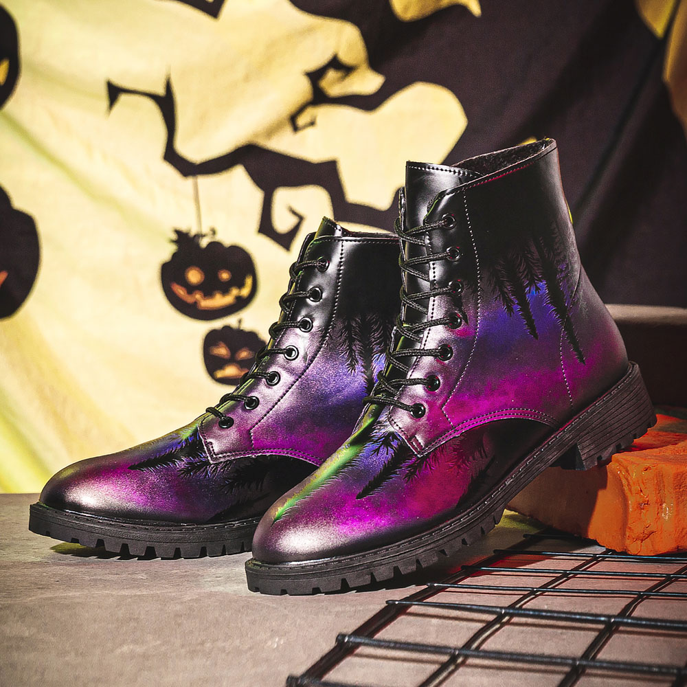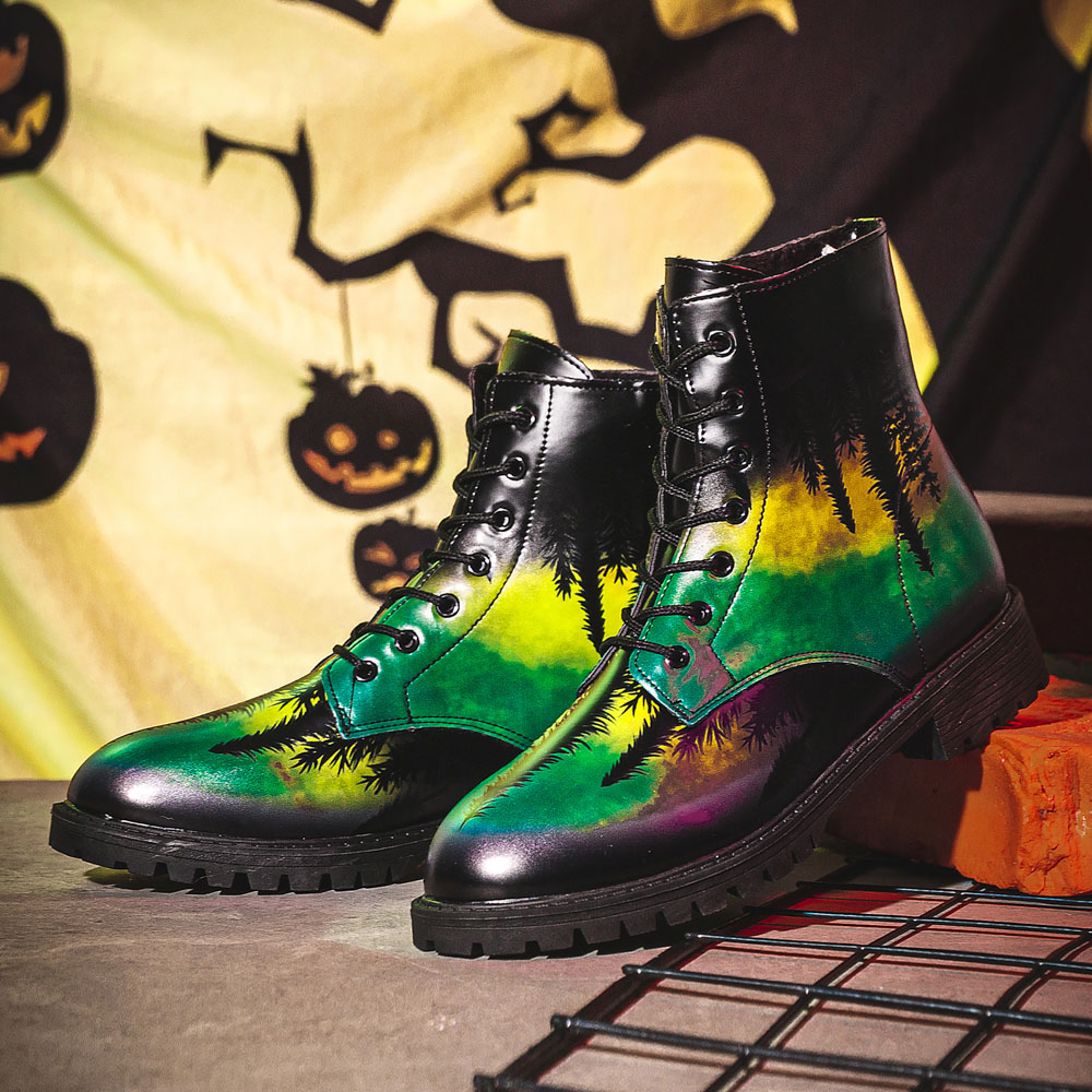 Men Leather Halloween Printing Soft Sole Round Toe Comfy Colorful Casual Martin Boots
