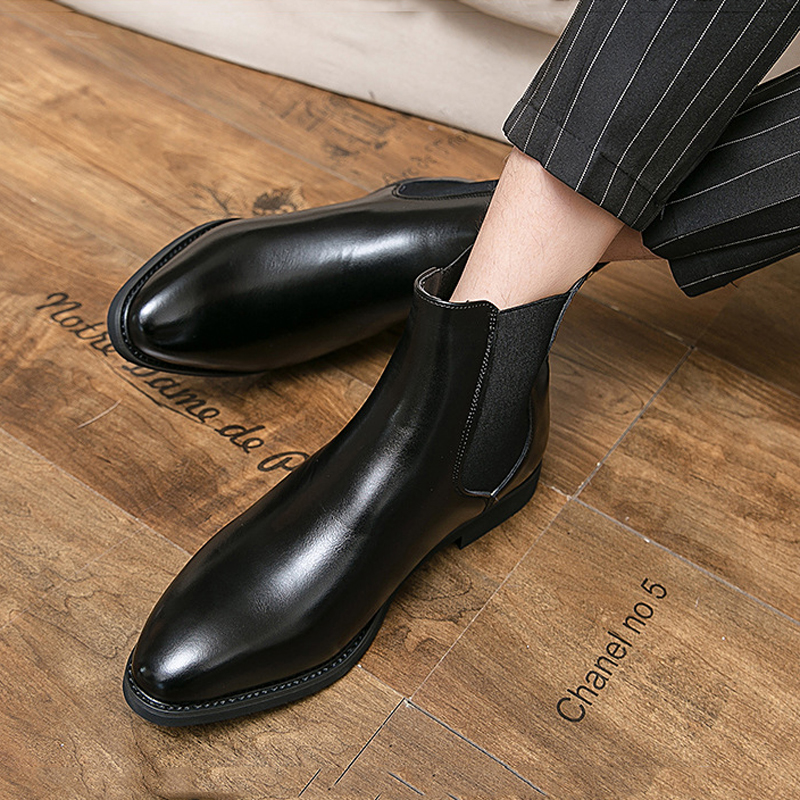 Men Leather Pointy Toe Soft Sole Trendy Slip On Casual Chelsea Boots