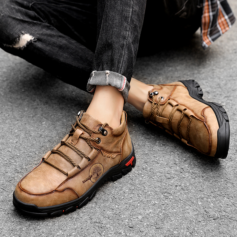 Men Outdoor Microfiber Leather Non Slip Hand Stitching Ankle Boots