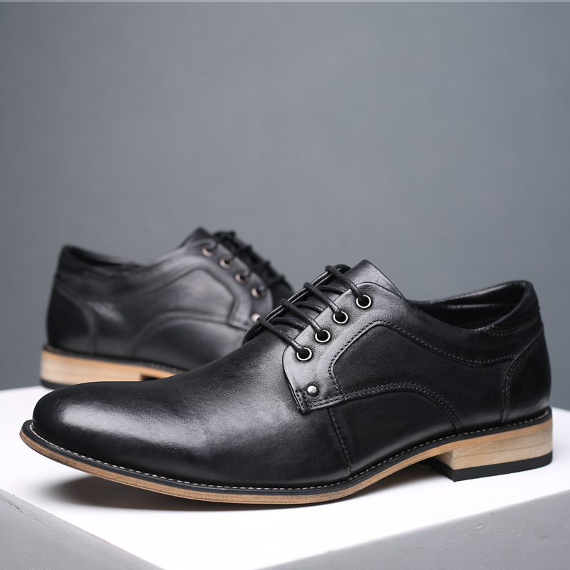 Large Size Men Vintage Genuiner Cow Leather Lace Up Businees Formal Shoes