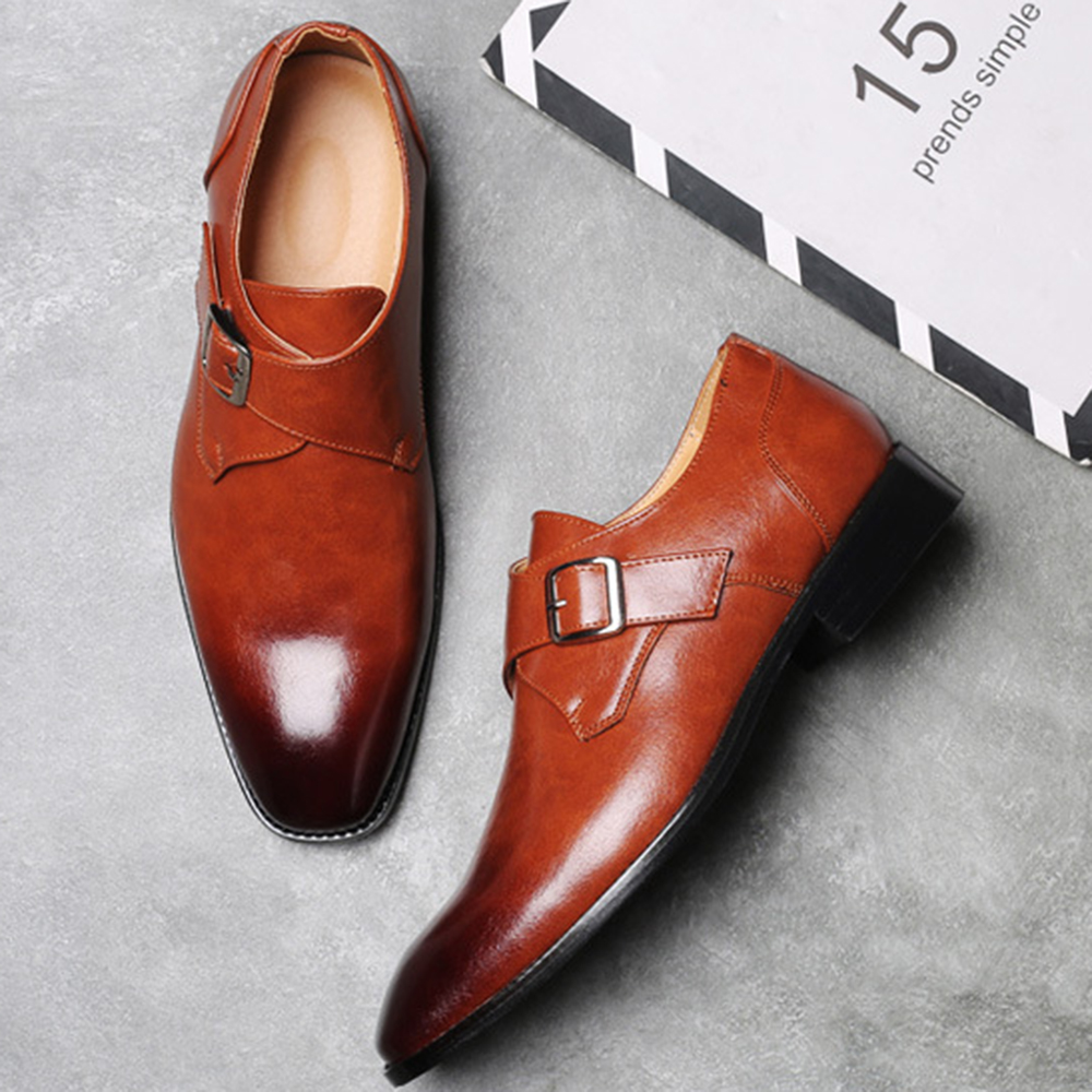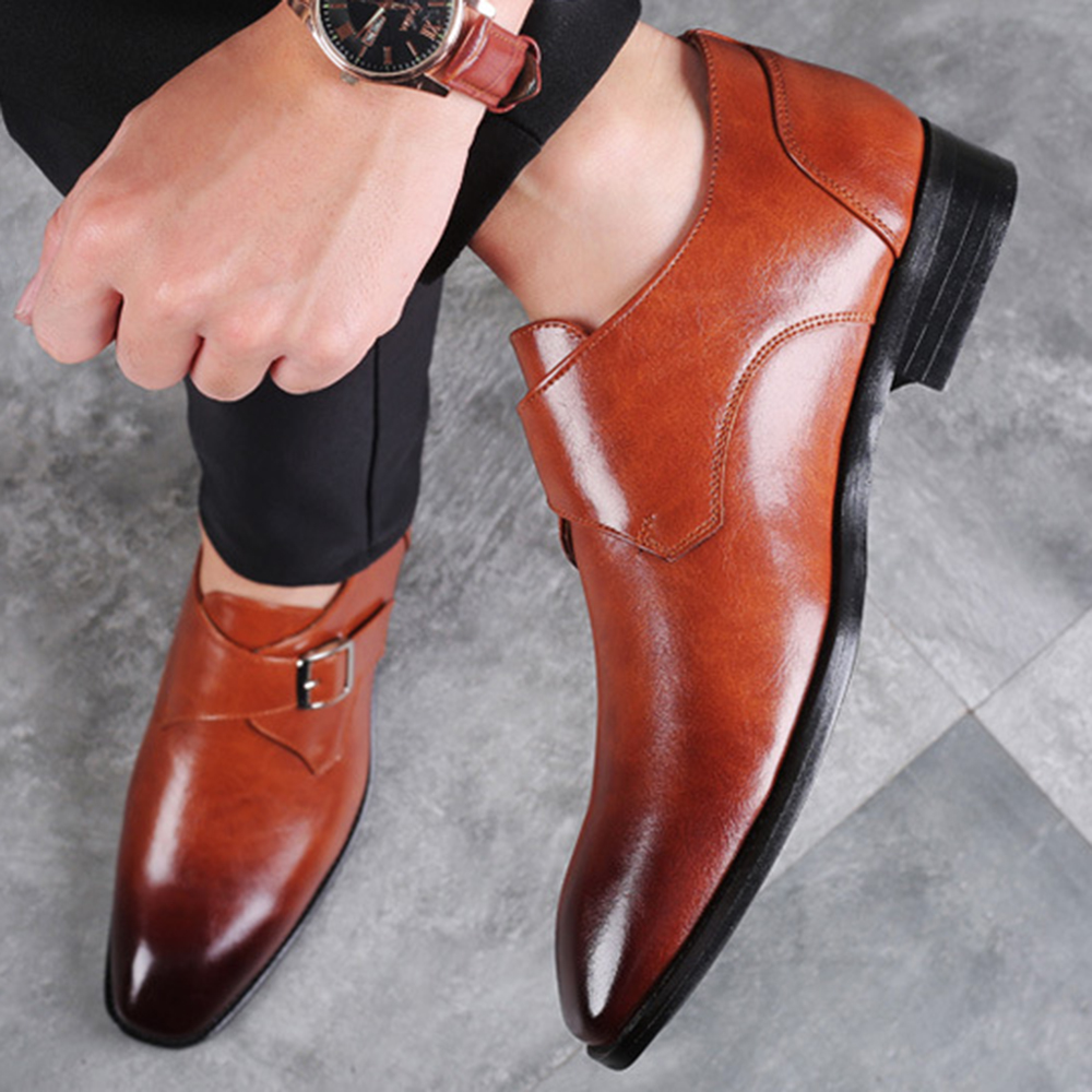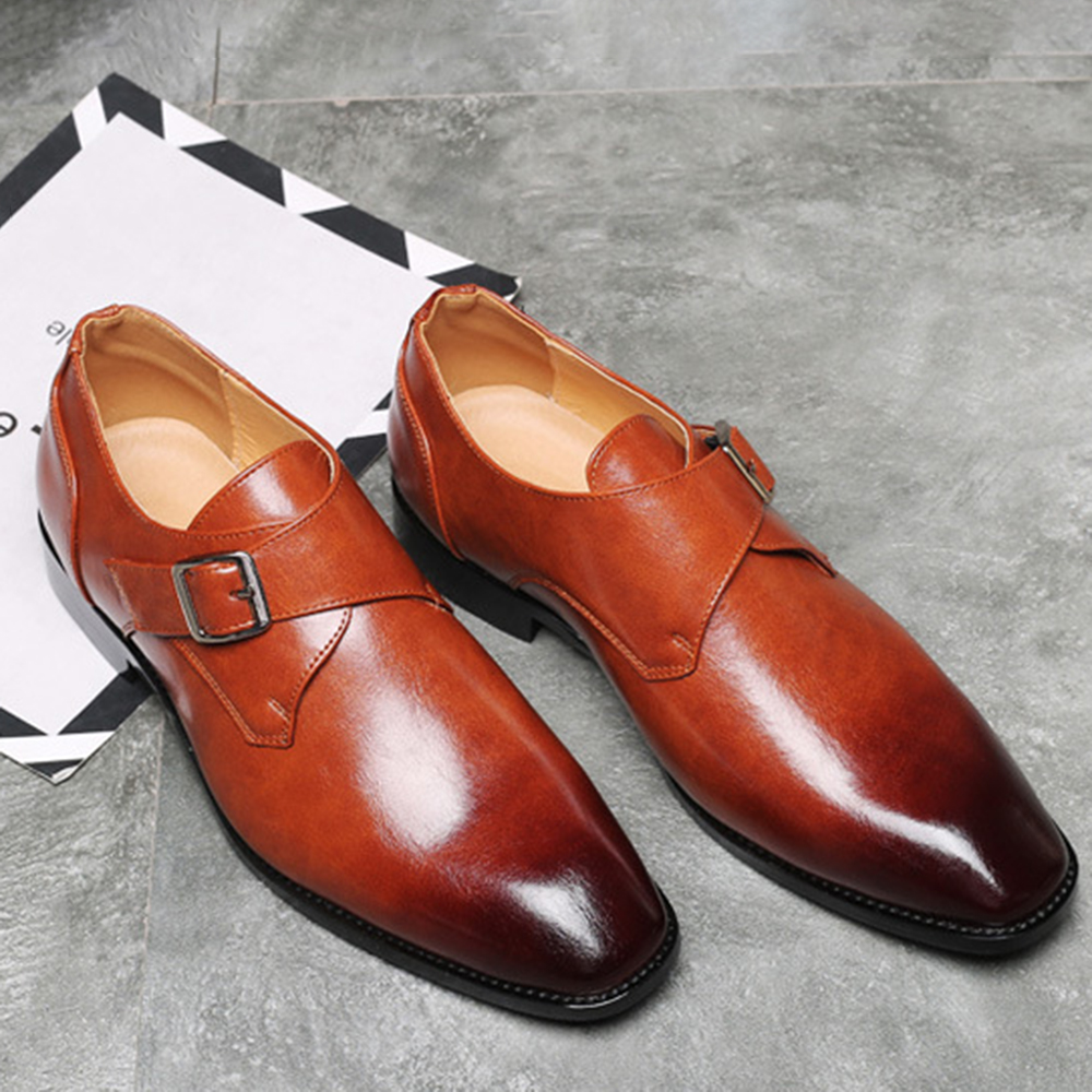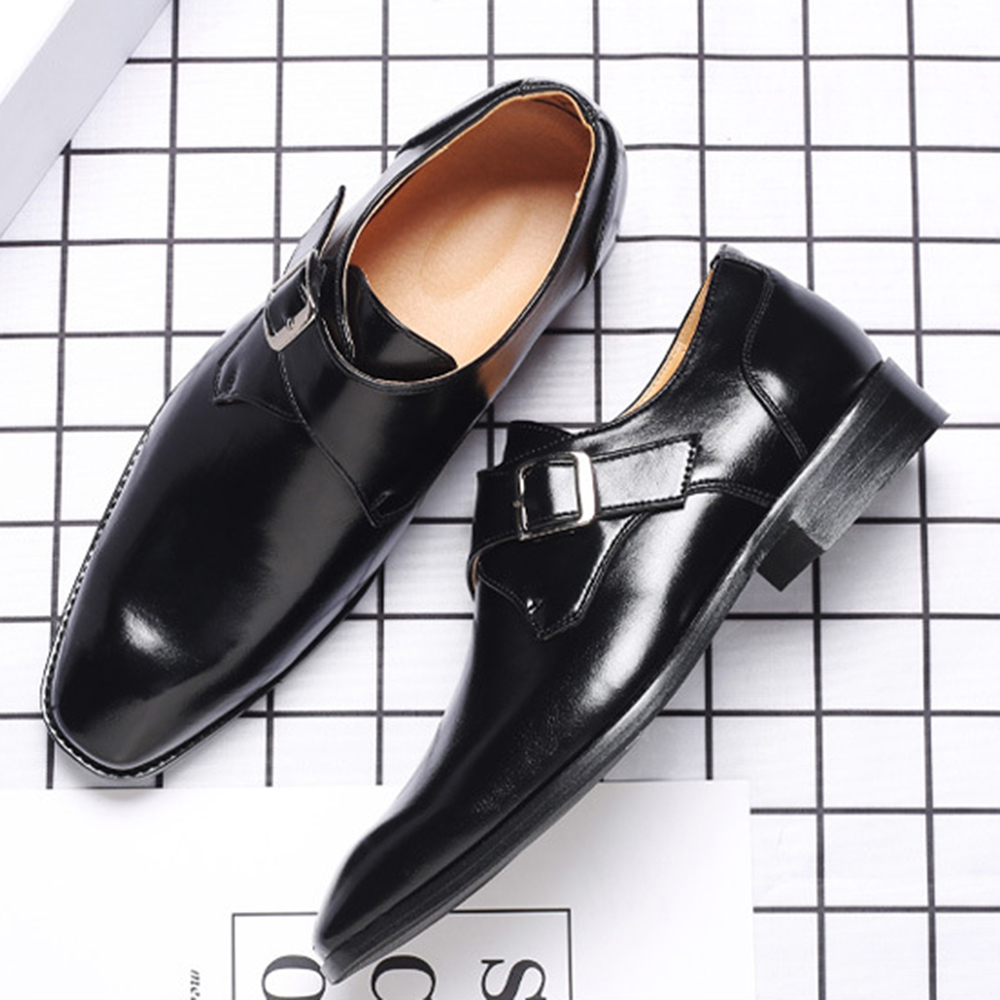 Men Buckle Square Toe Breathable Comfy Business Formal Shoes