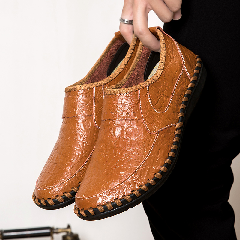 Men Soft Cowhide Hand Stitching Casual Slip On Business Oxfords