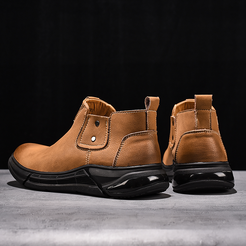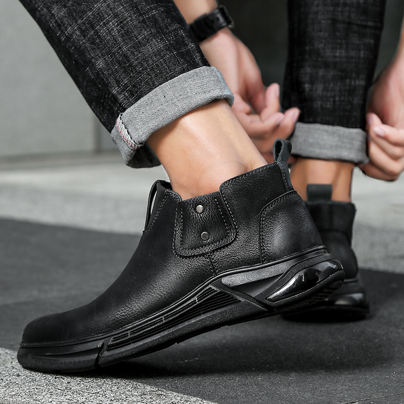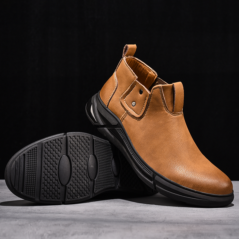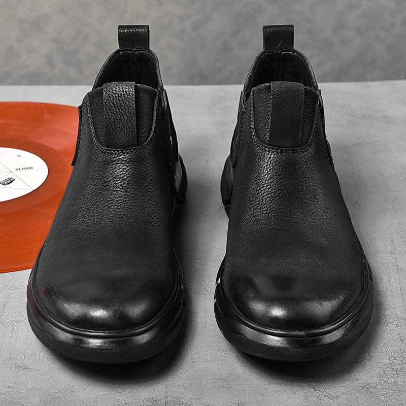 Men Retro Cowhide Leather Non Slip Soft Sole Elastic Slip On Chelsea Boots