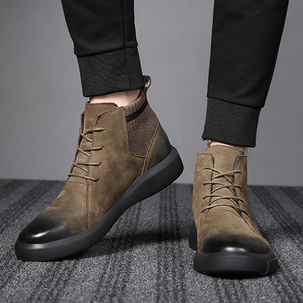 Men Retro Stylish Gradual Change Shoe Toe Casual Leather Ankle Boots