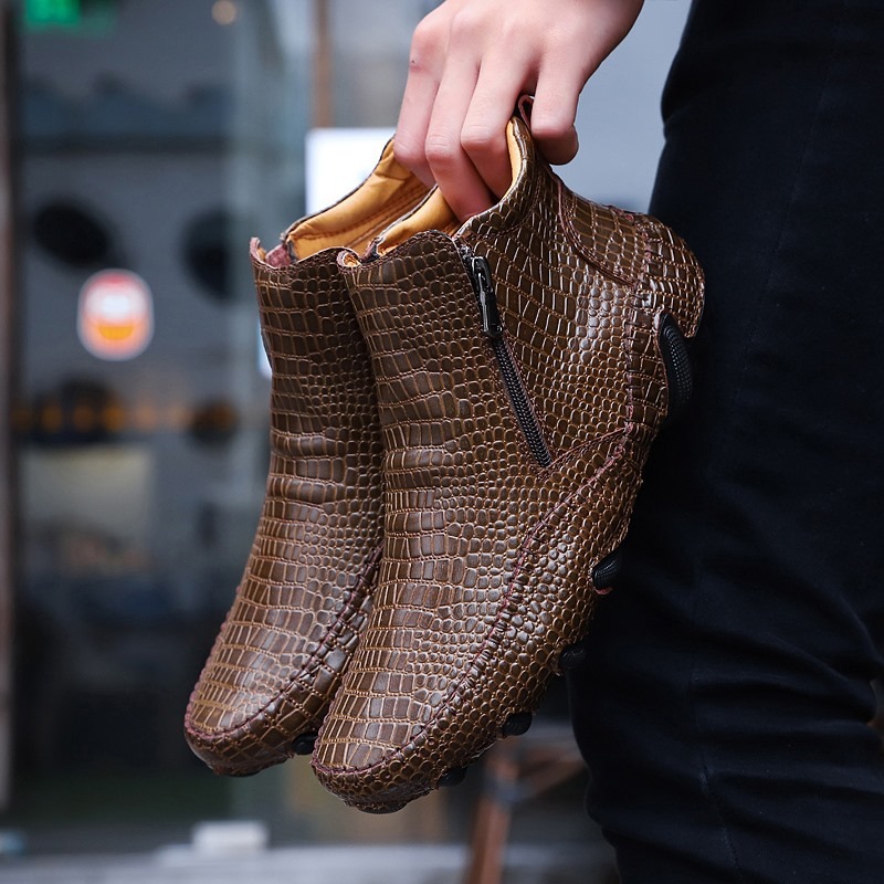Men Slip Resistance Side Zipper Leather Ankle Boots